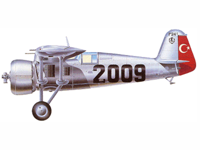 P.24A, E, F - 2 działka Oerlikon FF 20 mm pod skrzydłami, 2 km Colt-Browning MG40 7,9 w skrzydłach, bomby 4 x 12,5 kg lub 2 x 50 kg
